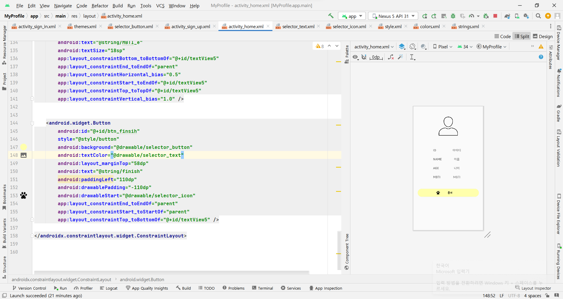 - drawableStart = "@drawable/selector_icon" 으로 icon selector 연동