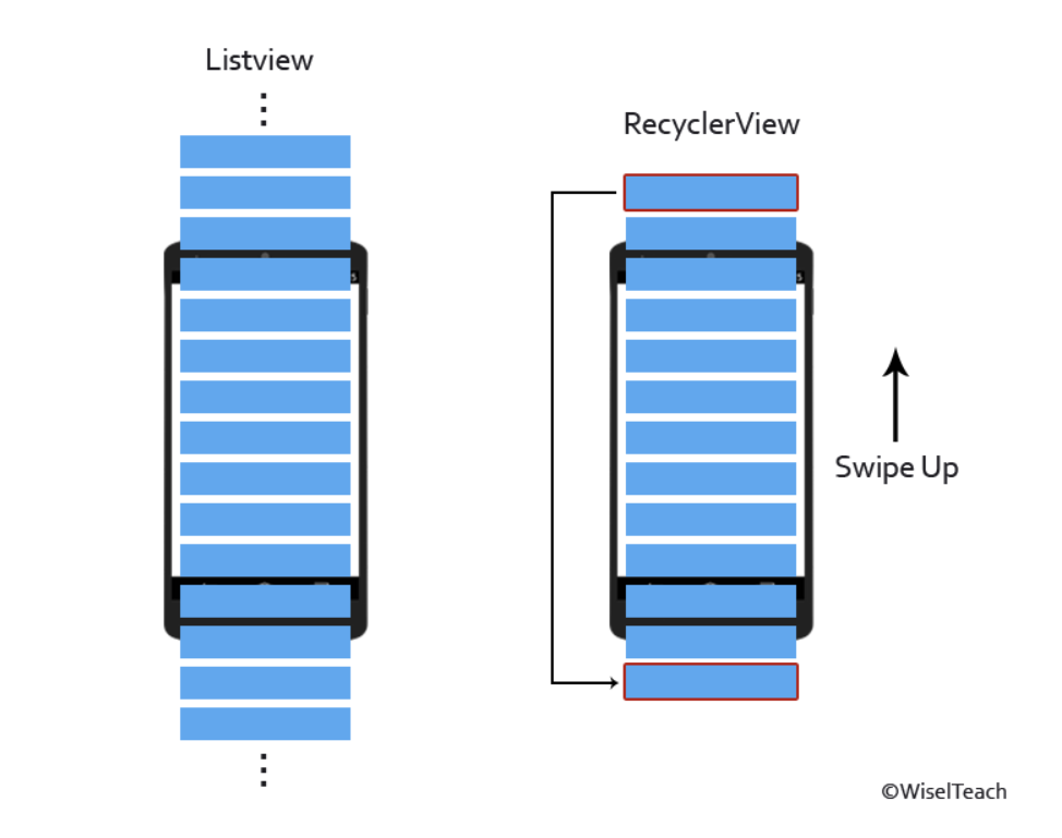 - ViewHolder로 기억한 View 객체는 맨 위의 객체를 맨 아래로 이동시켜 재활용