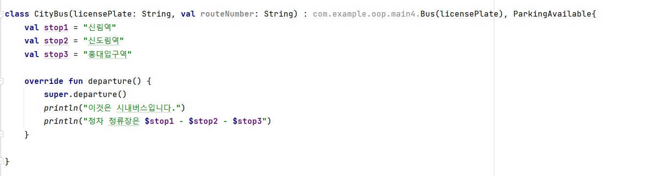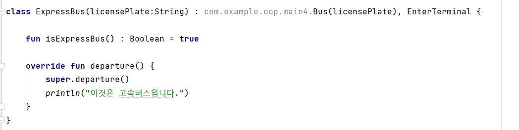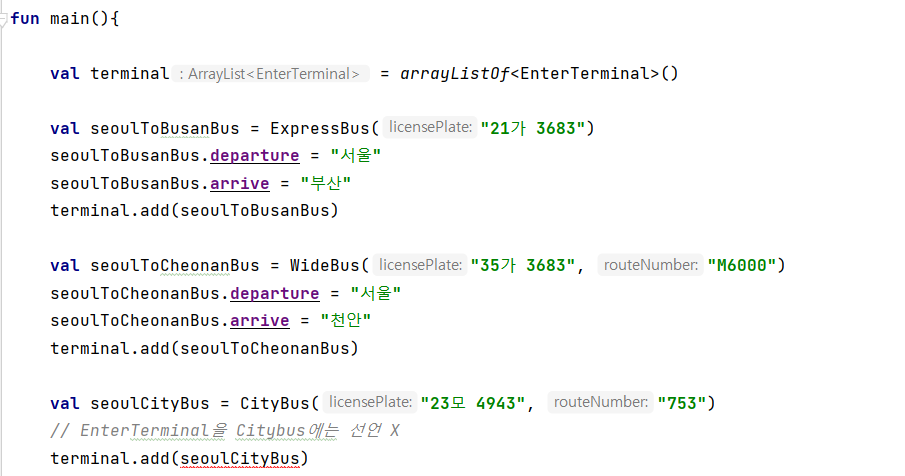 - CityBus 클래스는 EnterTerminal 인터페이스를 상속받지 않아서