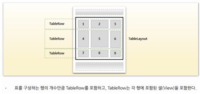 - 자식 View 위젯들을 테이블(행과 열)로 나누어 표시