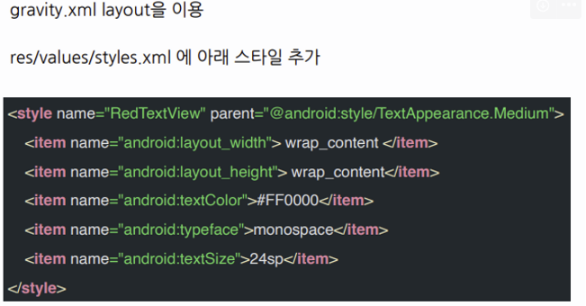- 개별 View가 아니라 전체 Activity or 애플리케이션에 적용되는 스타일