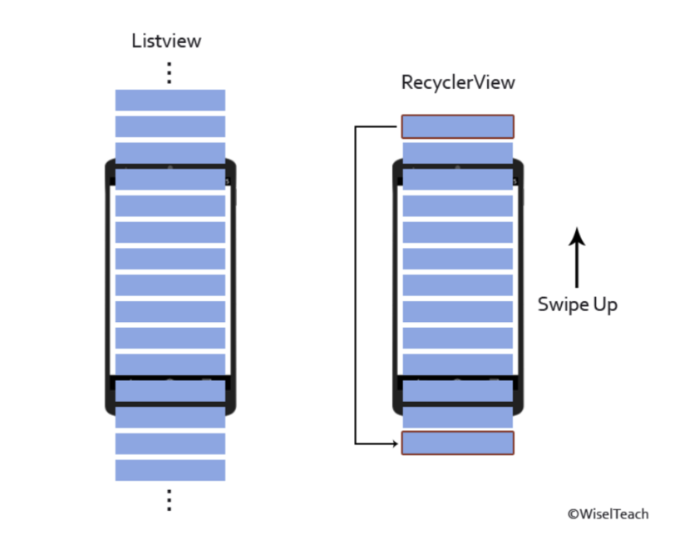 - 아이템이 100개여도 10개 정도의 View만 만들고 10개를 재활용해 사용